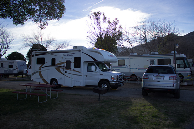 Eigentlich standen als nächstes Ziel die Kelso Dunes auf dem Programm. Da unserer Sohn aber wieder Richtung Universität musste und wir den Abend noch gemeinsam verbringen wollten, fuhren wir in Richtung KOA Campground Stagecoach/Bannig, damit der Rückweg zur Universität am nächsten Morgen nicht zu weit war. Also strichen wir gerne Kelso zu Gunsten eines weiteren Abends mit unserem Sohn aus dem Programm. Der CG in Banning ist nicht gerade toll gelegen, aber die Facilitys auf dem CG sind klasse. Sehr saubere Toiletten und Duschen, sowie einen schönen Pool. Leider habe ich unser Erkennungszeichen erfolglos durch Kalifornien gefahren, wir waren zu dieser Zeit wohl wirklich so ziemlich alleine in Kalifornien