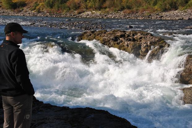 Rund 35 km südlich von New Hazelton machten wir einen Stopp am Moricetown Canyon. Hier stürzt der Fluß tosend durch eine wenige Meter breite Verengung. Die Indianer haben hier das Recht erhalten, nach alter Art mit hakenbewehrten Stangen Lachse zu stechen. Leider konnten wir sie nicht dabei beobachten.
