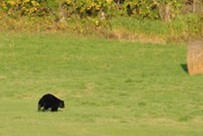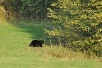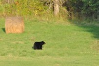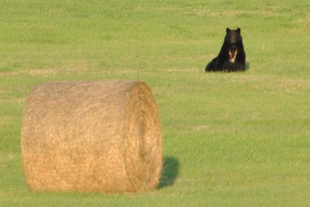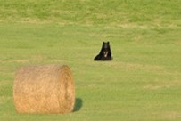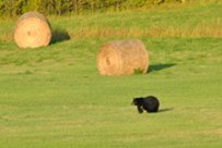 Und da sahen wir ihn, unseren Lieblingsbär. Er sonnte sich ganz relaxed zwischen Heuballen auf einer Wiese. Ab und zu stand er auf um ein wenig zu grasen. Er war einfach ein Prachtexemplar, unser Bär Nummer 7 und sah so friedlich aus. Wir beobachteten ihn lange mit dem Fernglas und konnten uns nicht trennen. Doch schließlich galoppierte er gemächlich in den Wald.