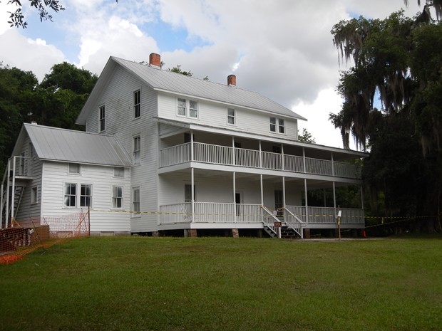 Dann laufen wir noch zum Bootsanleger. Die Strecke am Fluß ist wunderschön. Überall die moosbehangenen Bäume. Leider sind einige Abschnitte und auch das Thursby House wegen Renovierungsarbeiten gesperrt.