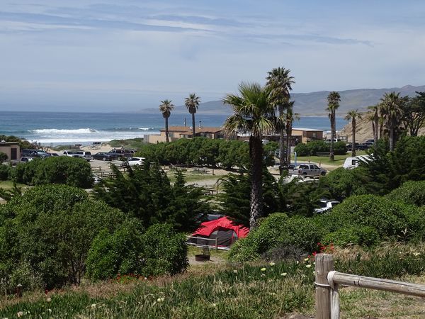 Am nächsten Morgen bei Tageslicht sehen wir sofort, dass es eine gute Entscheidung war, hierher zu fahren. Der Campground liegt einsam an einer Bucht. Außer einer Strandbar gibt es keine weitere touristische Infrastruktur. Unser Platz liegt leicht erhöht mit direktem, wunderbaren Meerblick. Das Wetter ist gut und so nutzen wir den Vormittag für einen ausgedehnten Strandspaziergang, während die Kinder im Wohnmobil chillen. Sonne, Seeluft und eine leichte Brise – Herz, was willst du mehr. Den Nachmittag verbringen wir am Wohnmobil und abends wird gegrillt. Unser Sohn qualifiziert sich endgültig zum „Burgermeister“. In der Nacht fängt es an zu regnen und dies setzt sich auch am nächsten Tag fort. Nicht gut für Touristen, aber sicher gut für die Natur und die Landwirtschaft hier. Nach der Trockenheit der letzten Jahre reicht ein niederschlagsreicher Winter sicher nicht aus. Ich habe gehört, dass die Brunnenbohrungen der vergangenen Jahre den Grundwasserspiegel weit abgesenkt haben und es braucht bestimmt noch einige Regenphasen, bis der dieser wieder auf normalem Level ist. Trotz des sich verschlechternden Wetters hat uns Jalama Beach sehr gut gefallen, gerade weil es so abgeschieden ist. Kleiner Tipp: Der Strand ist teilweise etwas grobkörnig. Wer empfindlich ist, sollte leichtes, wasserunempfindliches Schuhwerk anziehen.
