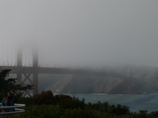 Hier auch mal die Golden Gate im Nebel - ob Ihr's glaubt oder nicht, wir hatten das mit dem Nebel schon für ein Märchen gehalten, da wir immer "nur" freie Sicht hatten Wink
