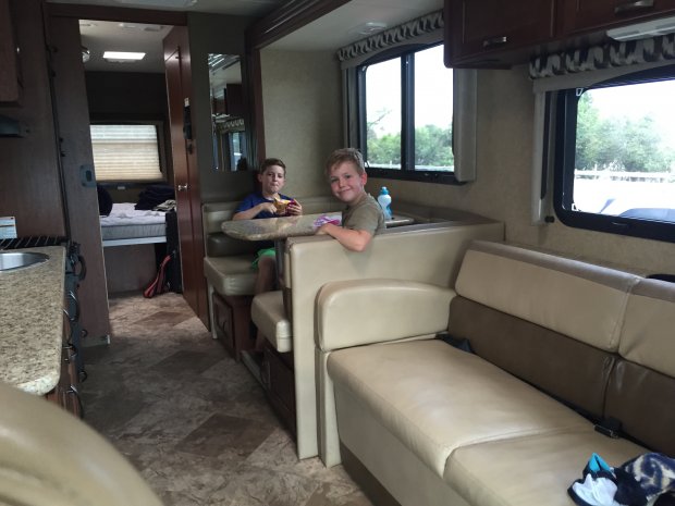 Noch 1,5 Stunden bis Barstow. Die Strecke zieht sich, wir haben alle keine Lust mehr, müssen jetzt aber noch bis zum KOA. Um 16:30 sind wir da, bekommen Platz 62 unter großen Bäumen. Wir freuen uns auf den Pool, die Jungs auf ein Trampolin. Bei 42 Grad (!) macht Hüpfen allerdings nicht wirklich Spaß. Wir fühlen uns gekocht vom Wind.