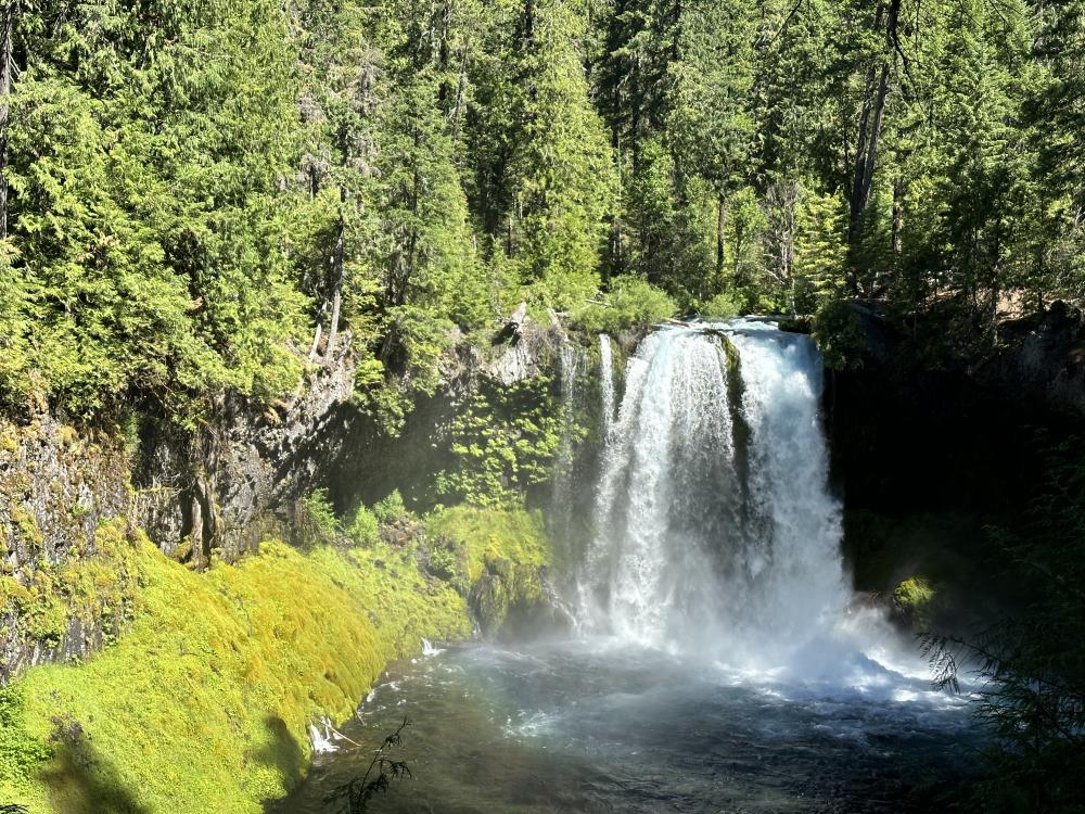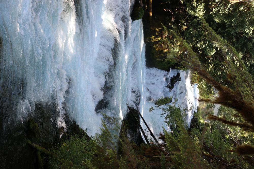 Noch vor 8 weckt uns ein kl Flugzeug, welches genau über uns startet. Aber egal, wir müssen heute eh früh los, fahren aber auch nur 10 Minuten bis zum Trailhead der Koosah / Sahalie Falls. Wir haben Glück und bekommen DEN EINEN RV Parkplatz - genau darauf habe ich gehofft. Erst mal frühstücken, um 10 Uhr gehen wir zu den Wasserfällen, der Sahalie Fall ist direkt am Parkplatz. Beeindruckend! Auch der Mc Kenzie River führt in seinem schmalen Bett viel Wasser und produziert viel Stromschnellen.
