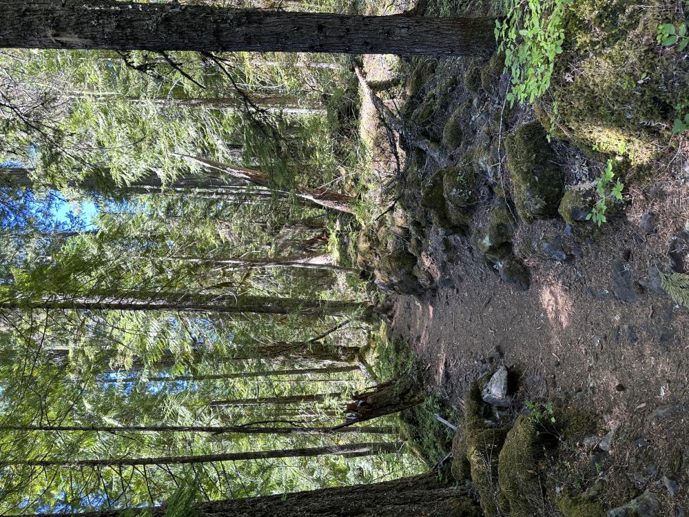 Der weitere Weg ist schmal und vom Rauschen laut, bald kommt der Koosah Fall. Im Wald ist es noch richtig kühl, sehr angenehm.