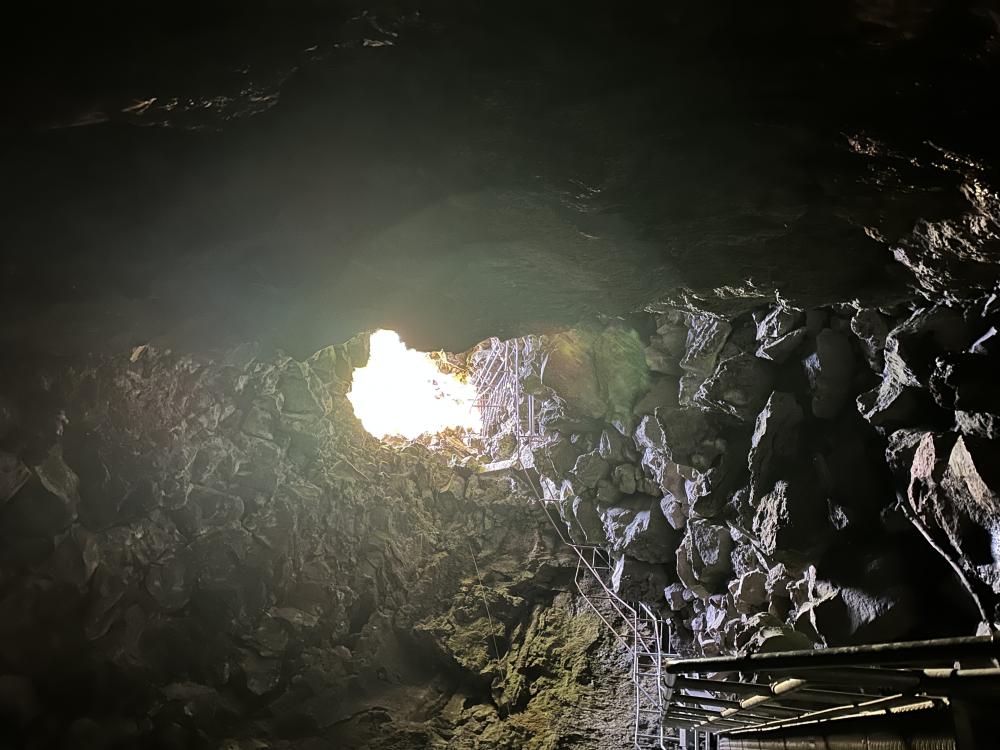 Für 15 Uhr hatte ich die Lava River Cave in Bend gebucht. Wir bekommen einen schönen Parkplatz zugewiesen, sowie eine Einweisung vom Ranger. In der Ape Cave dürfen wir also nicht die gleichen Sachen anziehen und mitnehmen, wegen der Bakterien. Ausgestattet mit Taschen- und Stirnlampe gehen wir die Treppe runter und es wird angenehm kühl, am Anfang liegt sogar Eis. Und es wird stock duster. In Europa wäre so eine dunkle Höhle undenkbar. Hat aber was. Auch hier gehen die Kinder weiter als wir. Die Wände und Decken sind beeindruckend, aber irgendwann ist Lava halt auch nur noch Lava