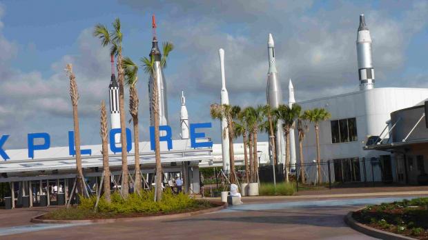 Nach dem Frühstück brechen wir um 8.30 Uhr zum Kennedy Space Center auf, es ist nur ein kurzer Abstecher von ca. 30 km. Als wir um kurz nach 9.00 Uhr eintreffen ist kaum etwas los. Bei der Einfahrt in den Parkplatz müssen wir erst einmal 15$ für das Wohnmobil bezahlen.