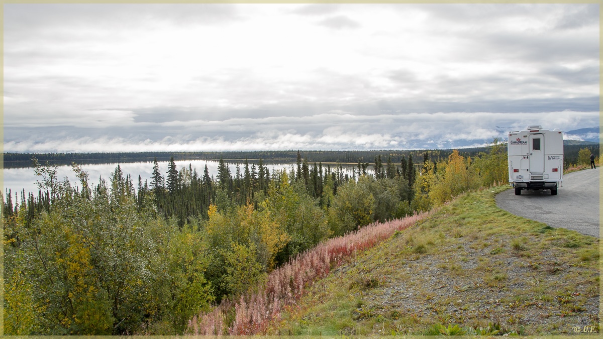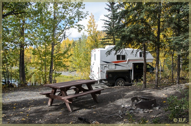 Ganz bis Glenallen fuhren wir nicht, sondern steuerten den Squirrel Creek CG an, der direkt am RW HW ca. 80 Meilen nördlich von Valdez liegt. Der Platz liegt sehr idyllisch am See und das Laub war auch hier wunderbar gelb verfärbt. Wie auf so vielen anderen Plätzen war es hier total leer und wir konnten uns die schönste Site aussuchen – für uns war das Nr. 16, ganz hinten direkt am Wasser.