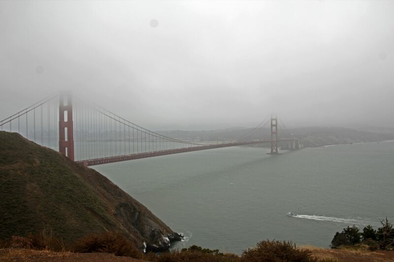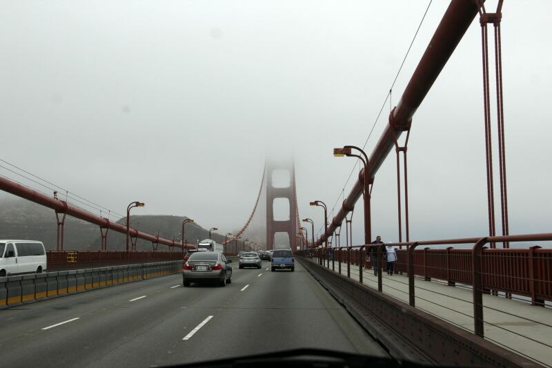 Als erstes erledigten wir den obligatorischen Großeinkauf und fuhren danach Richtung San Francisco und auf dem HW1 durch die Stadt. Unser erstes Ziel war die Golden Gate Bridge - leider im Nebel, aber trotzdem schön. Nach der Fahrt über die Brücke, auf die sich die Kinder nun schon zwei Jahre gefreut hatten, stoppten wir auf der Cozelmann Road für einen Blick auf Brücke und Stadt.